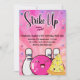 Esses convites de desenho animado de bola de boliche divertidos serão perfeitos para a celebração especial da sua filha. Inclui fundo de tiedye rosa, listras e estrelas com um efeito brilhante e colorido da moda.