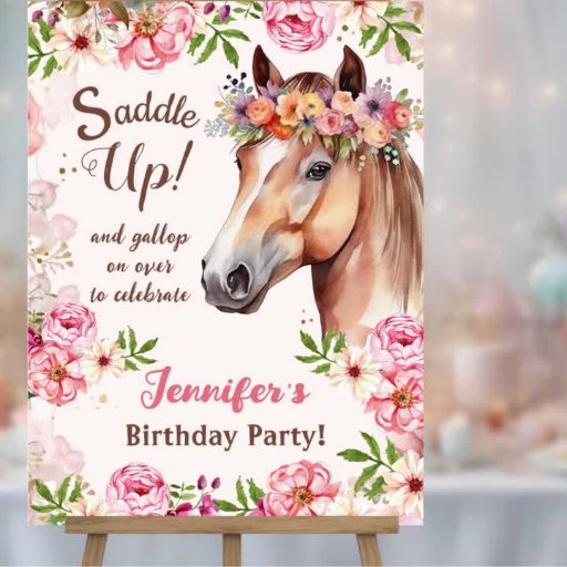 Convites Meninas Cavalo 10º Aniversário Saddle Floral Up!