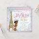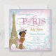 Lindo convite de chá de bebê Paris em azul-teal, rosa e dourado com adorável princesa étnica usando calças com babados, tiara e pérolas. Este adorável convite de chá de bebê Paris tem redemoinhos rosa e azul-teal com uma Torre Eiffel dourada e uma adorável bebê. Você pode personalizar facilmente este convite de chá de bebê Paris para o seu evento, simplesmente adicionando seus detalhes no estilo de letra e cor, e texto de sua escolha. Você também pode alterar a cor do fundo.