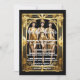 Um quadro de estilo de deco de arte dourada falsa ornamentado tem uma incisão preta na qual aparecem modelos brancos para sua redação personalizada. Três garotas de vidro Flapper com cabelo castanho curto estão se esforçando em sua direção, seus vestidos exuberantes de ferro dourado balançando ao seu redor. Todas são muito altas e suas longas pernas finas são enfeitadas com calçados de alto salto ouro. Eles são emoldurados por uma elegante e intrincada estrutura de estilo de vintage deco, que parece brilhar e brilhar. O design é adequado para as festas temáticas de 1920; celebrações tematizadas de arte ou o Excelente Gatsby, festas de noiva e eventos corporativos. São perfeitos para uso profissional e pessoal. A parte traseira tem o mesmo gráfico com um modelo para seu cabeçalho ou informações adicionais.