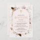 Boho Floral Baptism Floral Boho Convocação Boho Boho Boho Boho Flor Boho Boho Bonito cor-de-rosa batismo floral feminino ou convite batizante com um quadro rosa, uma palavra embelezada rosa e uma borboleta dourada falsa num fundo branco.