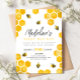 Este convite de "primeiro dia de abelha" para o primeiro aniversario das raparigas modernas apresenta um belo design de abelha de mel, com um pente de mel, e pode ser personalizado com toda a informação de que necessita para a primeira festa do seu filho numa tipografia fofa. O convite também apresenta um padrão de abas florais correspondente no verso. Os convites perfeitos para o seu aniversário de verão!