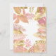 Este "dois" safari da selva, o segundo convite de aniversário da menina, apresenta folhas falsas de ouro (girafa, leão e macacos), folhagem dourada e rosa da selva, e uma aspersão de confete de ouro sobre fundo branco. Adicione o nome da aniversariante e os detalhes da festa em texto preto. No verso aparece um padrão de quadros coordenadores de folhas cor-de-rosa e douradas.
