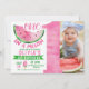 Meninas Grande Número Em primeiro aniversario Melão Convite para o melão das meninas doce O primeiro convite para o aniversário da foto, com uma fatia de melão grande, faixa verde, gelado de melancia e um grande número. Este em um convite para primeiro aniversario de melão é uma maneira fofa de convidar convidados para a primeira festa de aniversário do melão de sua garotinha.