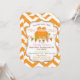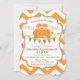 Impressão de fundo cor-de-laranja e branca com faixa de rodagem de bunting e design de convite para chá de fraldas de outono para meninas de abóbora pequenas.