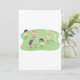 Um grupo de garotas chutando uma bola jogando futebol. Este design parece realmente eficaz nestes Convites