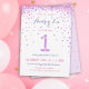 Celebre o aniversário de seu filho de 1 ano com um confete rosa e roxo colorido nestes convites para primeiros aniversarios! Apresentando os detalhes da festa da sua filha e um "1" em confetti. A parte de trás tem um design de confetti com uma cor de lavanda suave. Este design adorável é super fofo e giro - e perfeito para a garota que ama rosa e roxo!