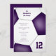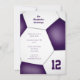 Este convite de aniversário temático de futebol esportivo para rapazes ou raparigas apresenta a imagem de uma bola de futebol roxa e branca abstratamente sobredimensionada sobre a qual se pode personalizar todos os detalhes da festa - por katz_d_zynes