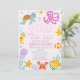 Meninas rosa-brancas se aproximam do primeiro aniversario do mar Convite para o primeiro aniversário de uma menina com várias criaturas marinhas ou criaturas marinhas e algumas algas marinhas. Esta garota está no convite de aniversário do mar é ideal para uma garota no mar, temida pela primeira festa de aniversário.