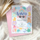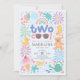 Celebre o segundo aniversário da sua filha com um doce estilo de verão com este adorável convite de aniversário "Two Cool". Concebido com uma paleta de cores rosa pastel suave e feminino, este adorável convite apresenta motivos encantadores de piscina, incluindo um patinho de borracha, bota de borracha, poças, flores, regador, gotas de água, arco-íris e bolhas. Perfeito para uma celebração de verão ou festa de piscina para crianças, este design define o tom para um dia divertido e alegre cheio de brincadeiras na água. Personalize facilmente com o nome da criança, idade e detalhes da festa para um souvenir memorável.