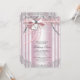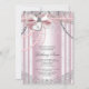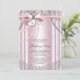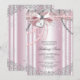 Convites de primeira comunhão para meninas rosa e cinza com laço de renda de pérolas bonitas e cruz em coração. Você pode personalizar facilmente este lindo convite de primeira comunhão rosa e prata para o seu evento, adicionando seus detalhes no estilo de letra e cor, e texto de sua escolha. Este é um design impresso sem jóias reais, pérolas, glitter, etc.