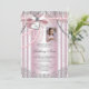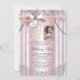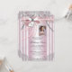 Foto rosa primeiro convite da comunhão com elegante prata e cinza de fundo e pérolas bonito e arco rosa com cruz e coração, e bela imagem rosa para sua foto. Este belo convite de primeira comunhão cor-de-rosa é facilmente personalizado para o seu evento, simplesmente adicionando a sua fotografia e os detalhes do evento no estilo de letra, cor e redação da sua escolha. Você pode recortar sua foto e mover o quadro para onde você precisar, à medida que a tornamos menor ou maior. Esta é uma design impressa sem fitas, arcos, pérolas, brilho, etc.