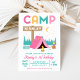 Meninas rosa modernas acampando no dia de aniversário Estimada Convocação Meninas coloridas acampando o convite de aniversário que poderia ser usado em qualquer idade com uma grande tenda cor-de-rosa, tenda rosa, fogo no acampamento, cartaz e muito mais. Ideal para uma festa de aniversário temática de acampamento para uma garota.