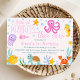 Meninas Rosa Sob o Mar Pinto o primeiro aniversario do Mar Chamando Meninas Coloridas Conquistando o primeiro convite de aniversário do mar com várias criaturas marinhas, texto retrô e algas marinhas. Um convite bonito para a primeira festa de aniversário de uma garota.
