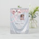 Convite de primeira comunhão rosa com cetim branco elegante e pérolas e laço rosa bonitos com cruz e coração, e bela moldura de foto rosa para a sua foto. Este lindo convite de primeira comunhão branco é facilmente personalizado para o seu evento, basta adicionar a sua foto e detalhes do evento no estilo de fonte, cor e texto de sua escolha. Você pode cortar sua foto e mover a moldura para onde precisar, bem como torná-la menor ou maior. Este é um design impresso sem fitas, laços, pérolas, brilho, etc. reais.