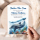 Celebrar o nascer a breve trecho com este oceano branco "Sob o Mar" inspirado em cores azuis com golfinho e onda para o seu Chá de fraldas Boy