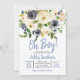 oh, garoto Baby Shower Invitations, bebês de chá, chá de fraldas azul, flores azuis, é um garoto,