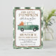 O Convite de Aniversário do Meu Menino Queda Qualquer Idade é a forma perfeita de convidar amigos e família para uma festa! O convite apresenta o padrão de verificação de búfalos verdes com um caminhão e abóboras.