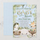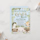 Convites de chá de bebê menino covid com animais usando máscaras em um fundo azul bebê e verde. Este convite de chá de bebê animal covid menino é facilmente personalizado para o seu evento, basta adicionar os detalhes do evento. Você também pode alterar a cor do fundo.