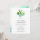 Convite de Comunhão Solene de menino com plantas de cacto do deserto suculentas aquarela floral azul turquesa hortelã com tipografia de letra manuscrita elegante personalizável para os detalhes do seu evento.