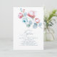 Convites de batismo para crianças, flores azuis e cor-de-rosa