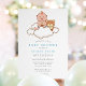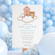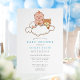 Celebre a chegada de um lindo bebê com este adorável convite de chá de bebê, que apresenta uma ilustração fofa de um menino sentado em uma nuvem fofa ao lado de seu ursinho de pelúcia. Com tons pastéis suaves e estilo de desenho animado divertido, este design traz um toque de calor e inocência, perfeito para uma reunião aconchegante de amigos e familiares. Ideal para os pais que desejam um tema leve e inspirado em livro de histórias, este convite dará o tom para uma celebração alegre e memorável. Ótimo para quem procura um design fofo e acolhedor que capture a magia dos novos começos.