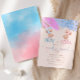 O gênero do ursinho de pelúcia ou de moça bonitinho revela convite de festas com brilho dourado e salpicos de cor azul e rosa.
