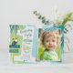 Um festa de aniversário de verão verde tropical com uma selva de folhas ao redor e aquarela