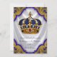Rico, azul real, e batismo príncipe dourado, convite com coroa azul e dourada, com joias rubis num lindo fundo azul real branco e espiral dourado. Este convite para batismo de príncipe ouro e azul-ornamentado é facilmente personalizado para o seu evento, adicionando detalhes do seu evento, estilo de fonte, tamanho de fonte e cor e texto. Você pode remover a placa e adicionar a cor de fundo de sua escolha. Este é um design impresso sem joias reais, brilho, cetim, etc.