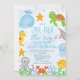 Meninos Sob o Mar Um Pó O Primeiro Convite de Aniversário do Mar Primeiro Convite de Primeiro Aniversário para um bebê com várias criaturas ou criaturas marinhas e algas marinhas. O convite de aniversário deste rapaz é ideal para uma festa de aniversário com tema no mar e pode ser usado para qualquer idade.