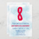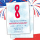 Crianças do 8º aniversário, garoto da festa azul 8º convite de aniversário para um garoto de 8 anos com fontes divertidas escrevendo e número de aquarela divertida.