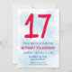 Crianças do 17º aniversário, garoto, festa azul do 17º convite de aniversário para um garoto de 17 anos com fontes divertidas escrevendo e número de aquarela divertida.