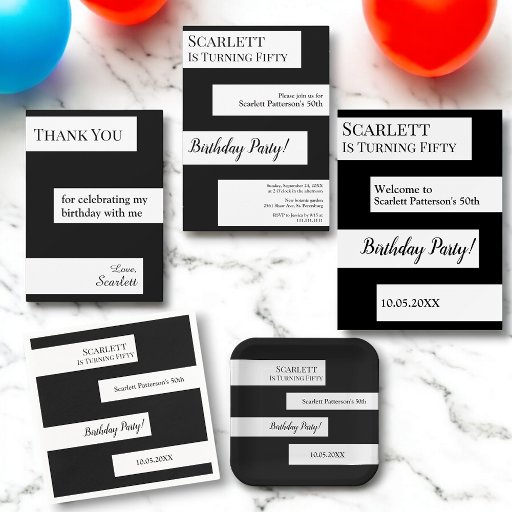 Convites Menor preto e branco Elegante 50º aniversário
