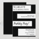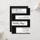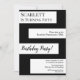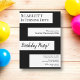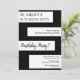 Este elegante convite de Aniversário preto e branco é perfeito para um Aniversário moderno. o simples design apresenta uma elegante caligrafia negra num fundo listrado em branco.