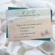Cartões de resposta de cardápio com fundo de praia e dois dólares de design. Incluir até três entrenes para os convidados numerarem ou iniciarem. Uma linha de texto é usada para direcioná-los como quiser. Incluir também uma linha para os convidados recusarem participar. Dólares de areia naturais e realistas decoram a esquina. O reverso é um gráfico azul-água.