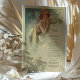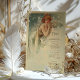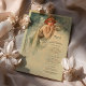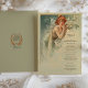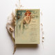 Este elegante menu do janto de casamento Art Nouveau desenhar inspiração no estilo icônico de Alphonse Mucha. Apresentando uma mulher graciosa adornada com flores e padrões intrincados, este menu irradia o encanto da vintagem com tons suaves de bege, ouro, verde-sábio e pêssego. A ilustração detalhada na frente é lindamente complementada por um design minimalista no reverso, fazer este menu uma escolha perfeita para casais que apreciam arte clássica e elegância eterno. Ideal para um casamento com temas antigos ou inspirado na arte, este menu irá adicionar um toque de refinamento ao seu evento especial.