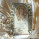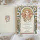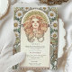 Este elegante menu do janto de casamento Art Nouveau desenhar inspiração no estilo icônico de Alphonse Mucha. Apresentando uma mulher graciosa adornada com flores e padrões intrincados, este menu irradia o encanto da vintagem com tons suaves de bege, ouro, verde-sábio e pêssego. A ilustração detalhada na frente é lindamente complementada por um design minimalista no reverso, fazer este menu uma escolha perfeita para casais que apreciam arte clássica e elegância eterno. Ideal para um casamento com temas antigos ou inspirado na arte, este menu irá adicionar um toque de refinamento ao seu evento especial.