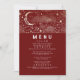 Noite estrelada e lua crescente vermelho e cartões de cardápio dourados