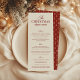 Note que a folha de ouro neste cartão de menu não é real; é um padrão impresso concebido para criar um efeito luxuoso de folha de ouro. Este belo cardápio combina charme de eterno com elegância festiva. O fundo vermelho profundo é perfeitamente complementado por um padrão de ouro gracioso, criando um design que se sente luxuoso e convidativo. Ideal para encontros de férias, o menu adiciona um toque quente e sofisticado à sua mesa de Natal, definindo o tom para uma refeição memorável. Personalize-o com os seus pratos ou mensagem especial de feriado para torná-lo exclusivamente seu.