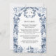 Convites Menu de Casamento Branco e Azul Floral de Flor