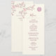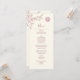 Uma cereja rosa poeirenta floresce e um símbolo de felicidade dupla rosa poeirento em um fundo creme. Com nomes personalizados de noiva e noivo, a data do casamento e um texto de menu personalizado.