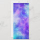 Cartão de cardápio de casamento com fundo abstrato cósmico. Cores vibrantes girando de azul claro, rosa e roxo. Estrelas brancas espalhadas ao redor.