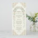 Um convite romântico de menus de casamento que inclui um delicado arco floral com rosas cor-de-rosa macia e detalhes botânicos do ouro. O elegante design de colheita cria um aspecto eterno, perfeito para casamentos clássicos e comemorações formais.