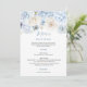 Convites Menu de Casamento Floral Azul e Branco Pálido