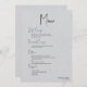Imagem de textura minimalista, moderna e leve de cinza com tipografia personalizável de escrita negra, elegante menu de casamento. O fundo impresso de textura de cor de cinza macia adiciona um toque de sensação orgânica de elegância clássica. Outras cores estão disponíveis.