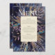 O buquê romântico pintou o menu azul, com sombras, roxas e sombras escuras. Este é um design de dois lados, com um menu em um lado e o número da mesa na parte traseira, com espaço para nomes de convidados. Há também uma opção com um menu de bebidas ou uma parte traseira simples. Consulte o pacote de correspondência de cheios aqui https://www.zazzle.com/collections/romantic_gilded_bouquet-119193137841903098
