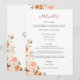 Cardápio de recepção de casamento floral rosa e pêssego rústico. Celebre seu casamento na recepção com estilo e doçura com este cardápio floral rústico. Personalize com as opções de entrada.