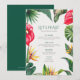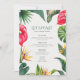 Este elegante cardápio de casamento design apresenta flores tropicais e quadros de folhas, juntamente com a sofisticada tipografia. Personalize o texto, as imagens e as fontes para criar um sentimento de classe, fazer-o perfeito para casamentos tropicais.