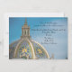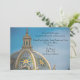 Detalhes do cardápio do evento de recepção de casamento no Mosaic Dome do Balboa Park San Diego, design do convite. Dê aos seus convidados uma prévia do que esperar na sua recepção com este cartão de recepção que oferece espaço para informações como o cardápio básico, código de vestimenta, entretenimento e localização. O design da frente é uma fotografia da cúpula mosaico localizada no Balboa Park, San Diego. A cúpula está à esquerda do design, com nuvens brancas e céu azul à direita. A fotografia é sobreposta com uma camada branca clara para fazer a impressão no convite se destacar, mas você pode personalizá-la removendo-a. O texto no lado direito é dividido em três seções, mas você pode personalizá-lo de acordo com as suas necessidades. Como mostrado, a fonte é Parisian, que dá um visual dos anos 1920, mas você pode personalizar a fonte. O verso tem a mesma fotografia e design, com um modelo para adicionar detalhes adicionais. Personalize-o com os detalhes que tornarão seu evento especial. Para casamentos e outros eventos e ocasiões no Balboa Park, San Diego, Califórnia. Visite a Coleção de Casamentos do Balboa Park para outros produtos com este design. Não vê este design em um produto que você deseja? Entre em contato com o designer com suas necessidades.