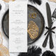 Menu de casamento minimalista baseado em tipografia elegante, com fundo branco de pelúcia, padrão paisley e tipografia clássica de cinza escura com sotaque floral botânico. Se precisar de ajuda para personalizar este design, por favor, envie-me uma mensagem no Zazzle.